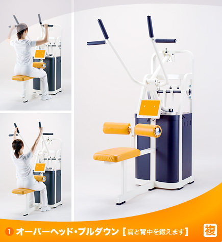 リハビリ施設向けに設計したフィットネスマシン(Medimo)は、運動負荷や回数がコンピュータで管理出来る。個人認証を指紋認証で行えるなど画期的な機能が多い。様々な運動モードや運動の履歴が管理出来る。また、グラフや実施記録など出力が出来るのも便利。