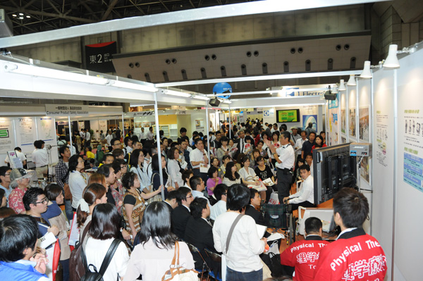 作業療法士協会、そして東京都理学療法士会、日本理学療法士協会のブースは、通路が通れないほどの人だかり。「なんだろう、この人だかりは?」と展示ブースの中でも存在感、注目度は抜群でした。今回は、作業療法と理学療法の展示でしたが、今後は言語聴覚士ブースも合わせて出展できれば、より専門性が伝えやすいのではとおもいました。