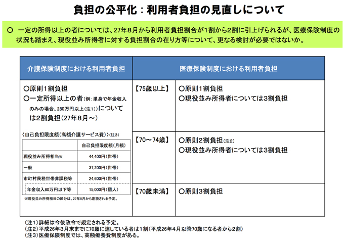 財務省は8日の「財政制度等審議会」で、医療では最大で3割の負担を求めていることからも、負担の公平性を確保する観点から、介護保険の負担割合の引き上げることや、介護納付金の総報酬割の導入など検討していく必要があると示した。
