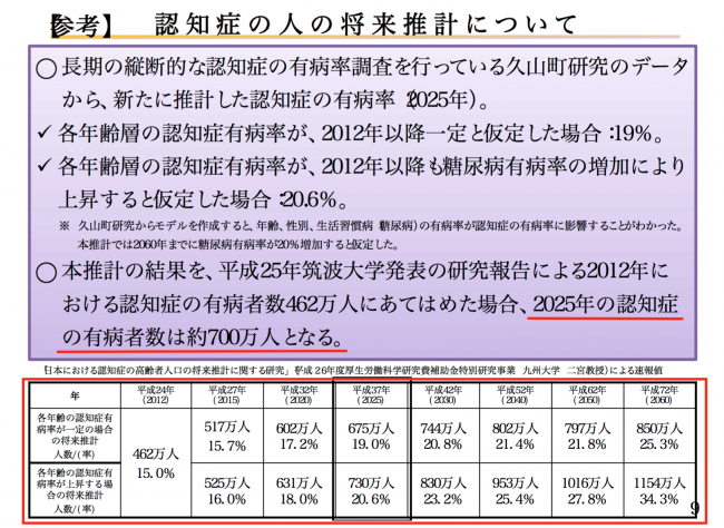 認知症の人の意思が尊重され、できる限り住み慣れた地域のよい環境で自分らしく暮らし続けることができる社会の実現が期待される。