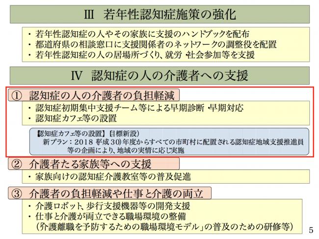 厚生労働省は「認知症カフェ」で認知症の人と顔なじみで友人のようになっているボランティアを「認とも」と命名し、事情によりカフェに頻繁に通えない人の家に出張して話し相手になり、本人や家族を支援する事業を開始する。政府は2015年1月に策定した認知症対策の国家戦略に「認知症カフェ」の設置推進を盛り込んでおり、今回、自宅訪問を実施する市区町村に対し、活動費を助成するため、16年度予算案に26億円を計上した。