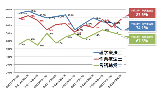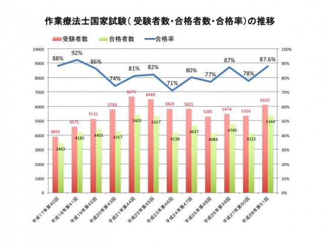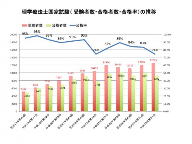 第51回理学療法士・作業療法士国家試験の合格発表が行われ、理学療法士は9,272人、作業療法士は5,344人が国家試験に合格した。理学療法士の国家試験受験者数は過去最高の12,515人となっており、第1回の国家試験から139,203人の理学療法士が国家資格が取得している。