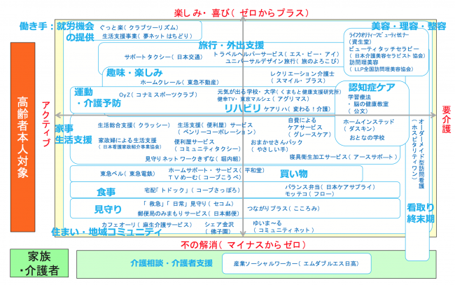 これから保険外分野で高齢者向けサービスを提供しようと考える事業者にとって、先行して取組んでいる事業者の事例が、市場参入や事業拡大、介護事業者にとっては保険外収入の確立への示唆となることが期待される。