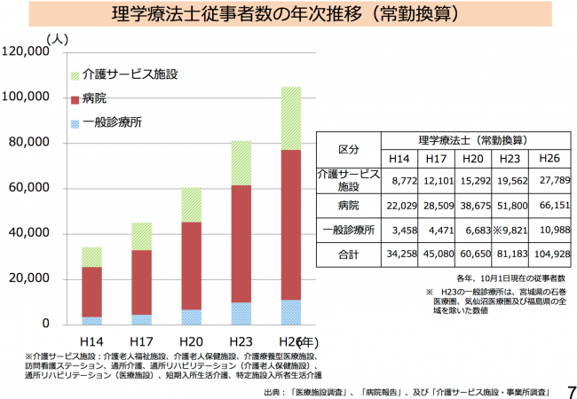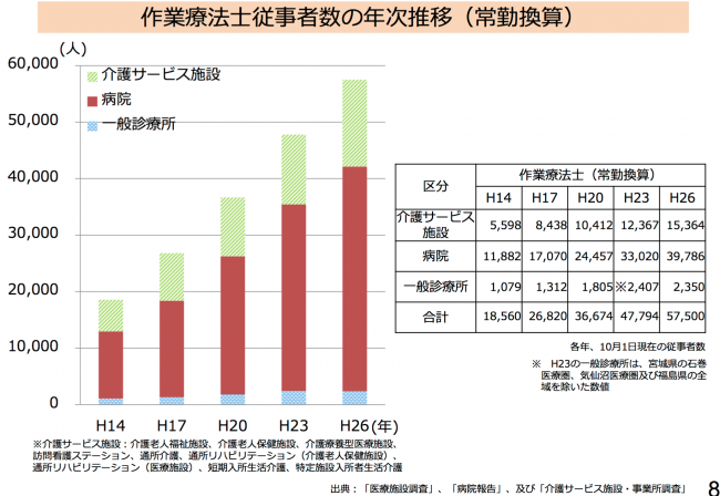 資料:医療従事者の需給に関する検討会(第1回)資料3ー医師・看護職員・理学療法士・作業療法士の従業者数について(PDF)
