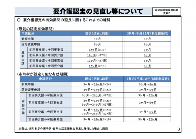 会合では委員から、「不適切な給付を招いてしまうようではよくない」「ケアマネジャーがきちんと利用者をみていくことが大事」といった声もある。今後は、詳細なルールや実際にどの区分で36ヵ月を適用するかなど、これから慎重に協議して決定するとしている。