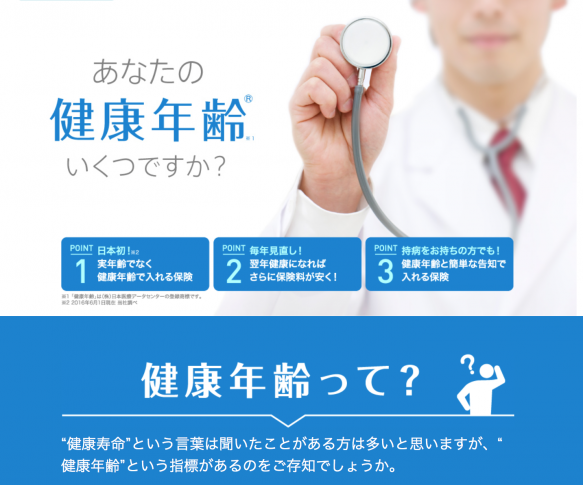国内初、医療ビッグデータを基に算出した「健康年齢」によって保険料が変わる、医療保険商品の発売を健康年齢少額短期保険株式会社が発表した。「健康年齢」は株式会社日本医療データセンターが保有する160 万件超の匿名化された健康診断の結果とレセプトの医療情報を基に算出。健康になるための「行動変容」を促すインセンティブの機能も持ち合わせた、「健康な人ほどお得」になる医療保険となっている。