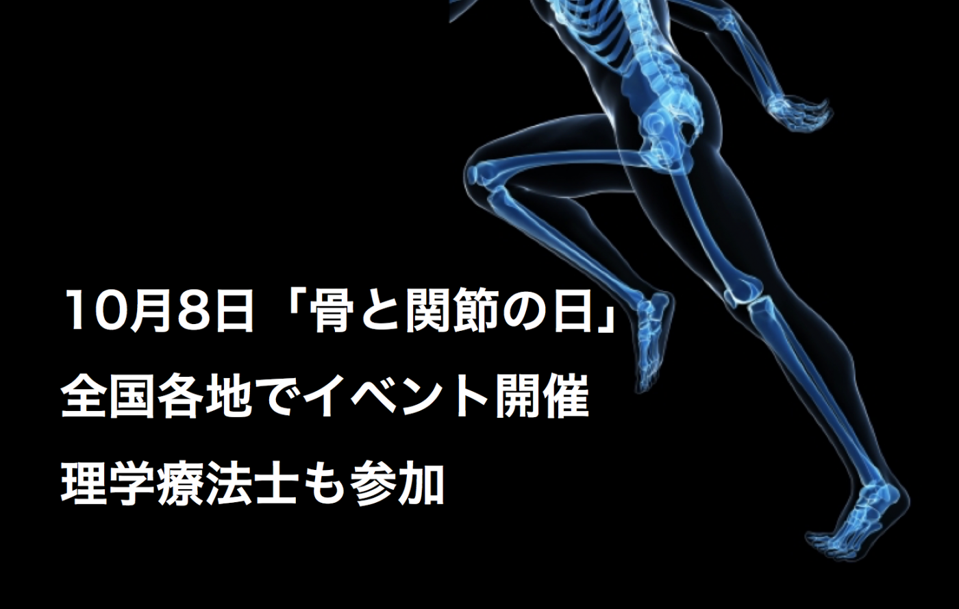 日本整形外科学会は10月8日を『骨と関節の日』と定め、各都道府県の臨床整形外科医会がこの日を中心に全国各地でさまざまな行事を行なっている。『ホネ』の『ホ』は十と八にわけることができ、10月10日の体育の日にも近いがことが記念日の由来。