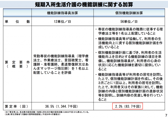 「質の高い機能訓練を行えるようにするための評価を創設」と意味付けられており、リハビリテーション専門職に対する期待が伺える。