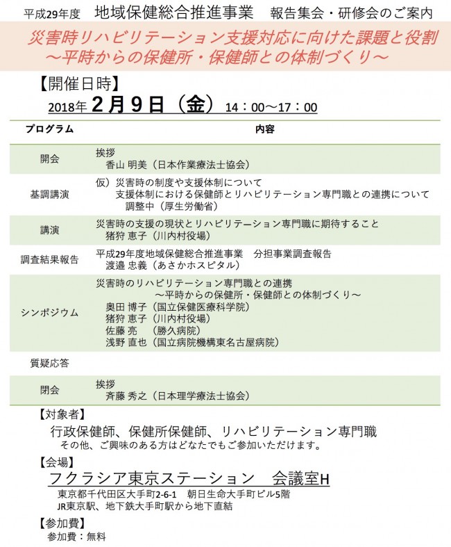 問い合わせ先:日本理学療法士協会事務局 戸塚満久