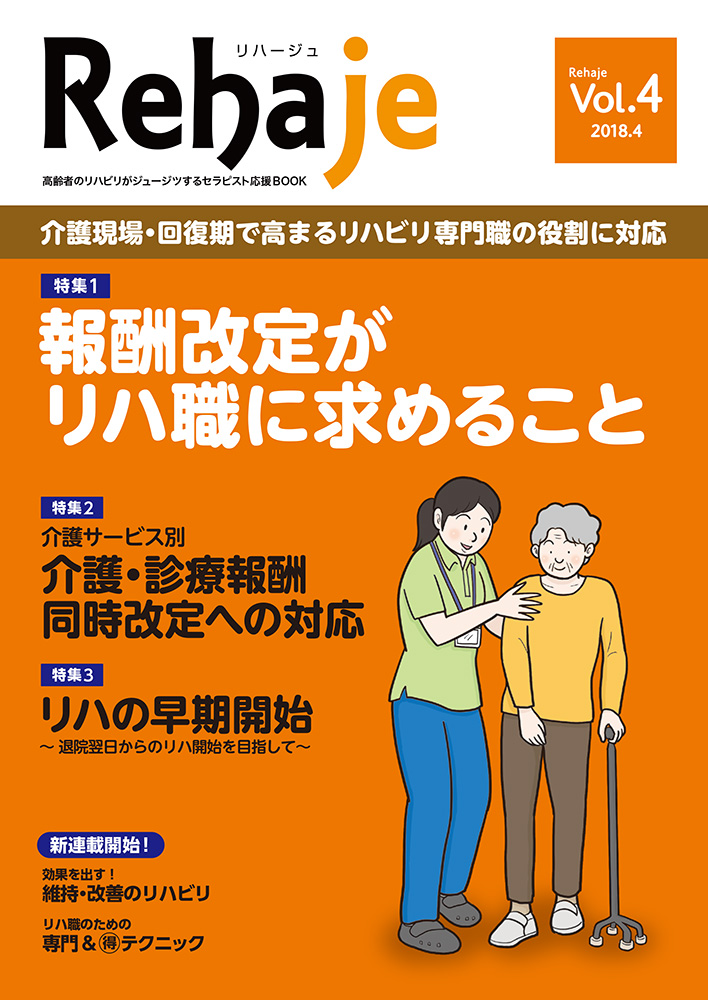 特集は、「各協会の対応やリハ職に求められる役割の紹介」「介護サービス別の同時改定への対応」「退院翌日からのリハ開始を目指して」の3本立て。