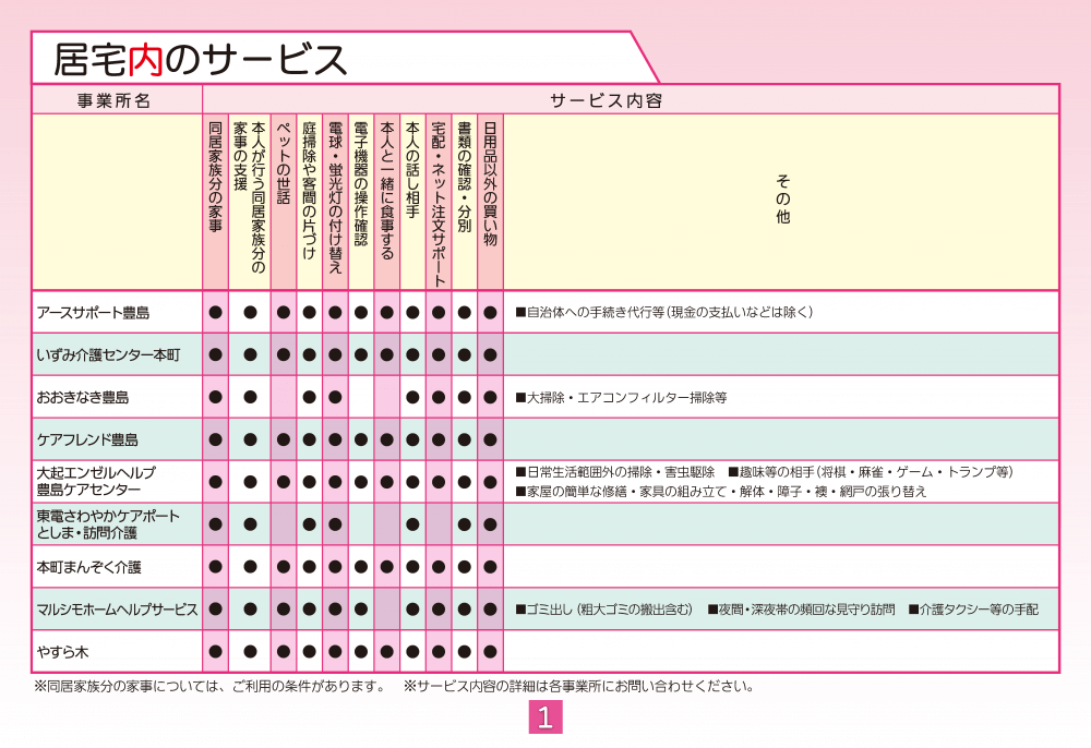介護保険対象と介護保険適用外のサービスを組み合わせる「混合介護(選択的介護)」について、8月からモデル事業として実施しているサービスの内容と料金などに関するメニューブックを豊島区がホームページにて公開した。