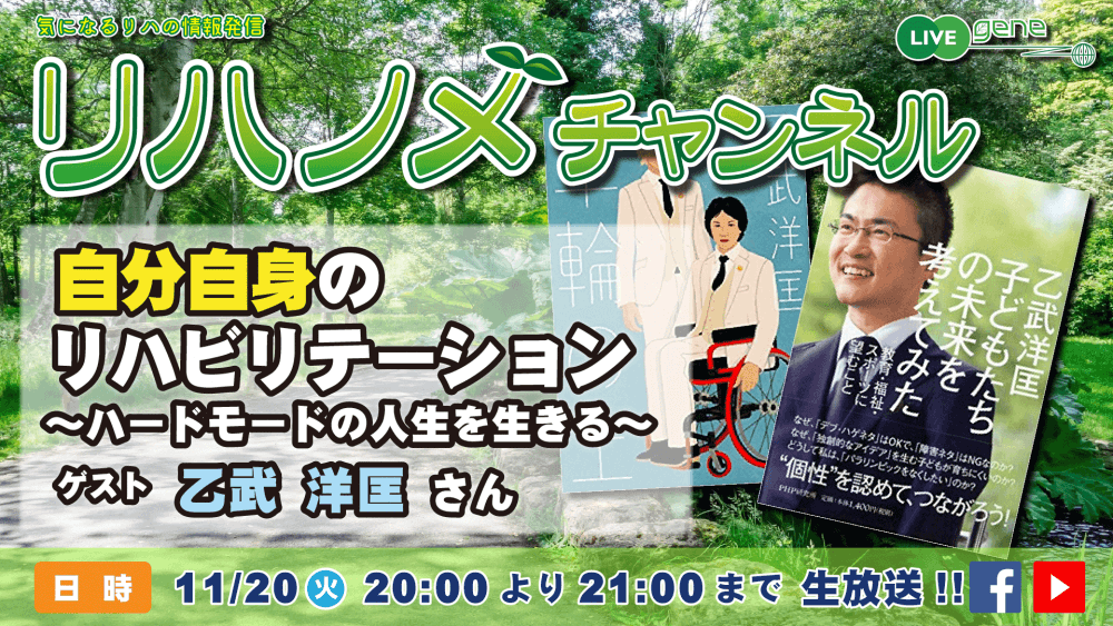 「五体不満足」の著者、乙武洋匡さんがリハノメチャンネルに出演することが決定した。
