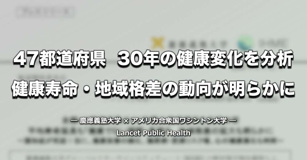 慶應義塾大学と米国ワシントン大学による国際共同研究グループは、日本の47都道府県における1990年から2021年の健康状態の変化を分析し、研究成果を国際学術誌「The Lancet Public Health」で発表した。